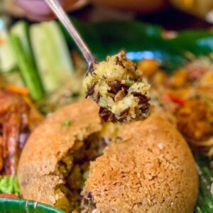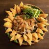 Xôi gà giòn được chế biến từ thịt gà loại 1 ngon nhấtt, trộn cùng gia vị, mộc nhĩ nấm hương và xôi thơm dẻo, bên ngoài là lớp cơm nếp mỏng chiên giòn ăn kèm sốt mayonaise và tương ớt rất ngon.